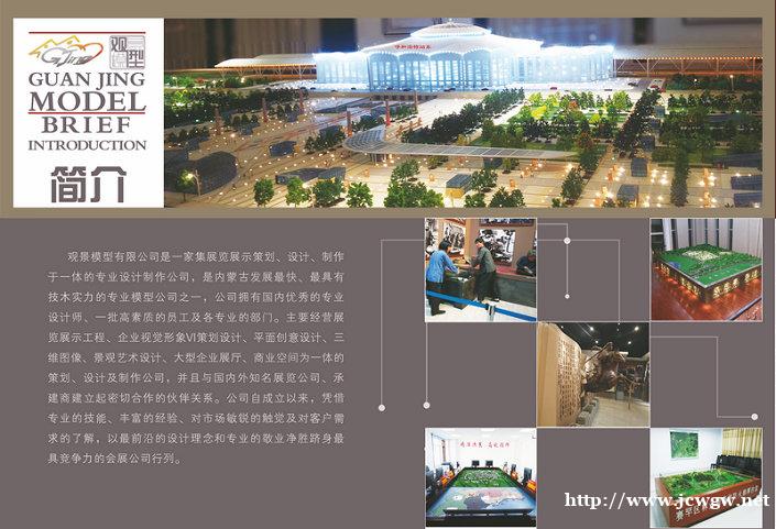 内蒙古观景文化传媒有限公司是一家集展览展示策划、设计、制作于一体的设计制作公司,是内蒙古发展快、具有技木的模型公司,公司拥有一批员工及各的部门。主要经营展览展示工程、企业视觉形象VI策划设计、平面设计、三维图像、景观艺术设计、企业展厅、商业空间为一体的策划、设计及制作公司,并且与展览公司、承建商建立起密切合作的伙伴关系。公司自成立以来,凭借技能、丰富的经验、对市场的触觉及对客户需求的了解,以前沿的设计理念和敬业净胜跻身具竞争力的会展公司行列。内蒙古观筑模型公司制作地产模型,工业模型,方案模型.沙盘模型制作,沙盘展览展示等咨询 联系我时,请说是在季晨网看到的,谢谢!